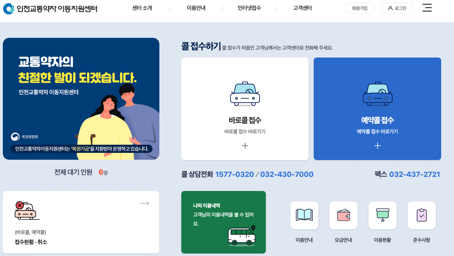 - 인터넷 접수: 인천교통약자 이동지원센터 (이용 시간 최소 3시간 전 접수 필요)